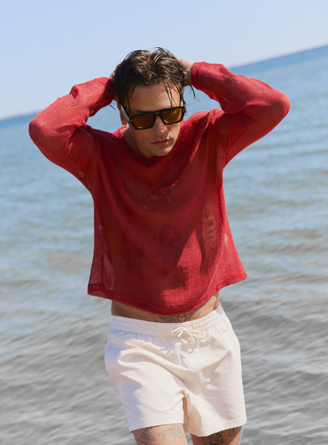 Polarized lenses are responsible for reducing glare from flat surfaces, e. g. of the water sheet. The reduction of glare makes the image sharper and the colors more saturated.